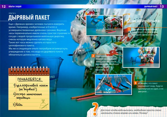 Видеоролики и, конечно же, книга учит подписчиков и читателей простоте и гениальности окружающего мира, помогает делать совершенно неожиданные открытия с помощью самых обыденных вещей – воздушных шариков, овсяных хлопьев, поваренной соли, уксуса, карандашей и много другого. Все представленные опыты будут интересны не только детям, которые любят похимичить с мамиными шампунями и папиным одеколоном, но и взрослым, которые наверняка присоединятся к выполнению задачи.