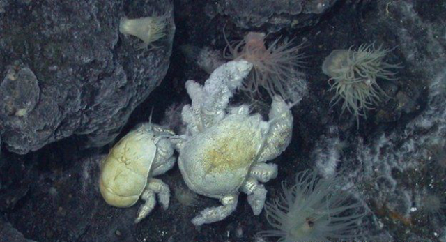 Снимки, полученные во время экспедиции британского батискафа Isis в 2010 году, показали, что несколько сотен особей ютятся на небольших участках своей зоны обитания (до 700 крабов на один квадратный метр). Температура там колеблется от +4 до +30 градусов.