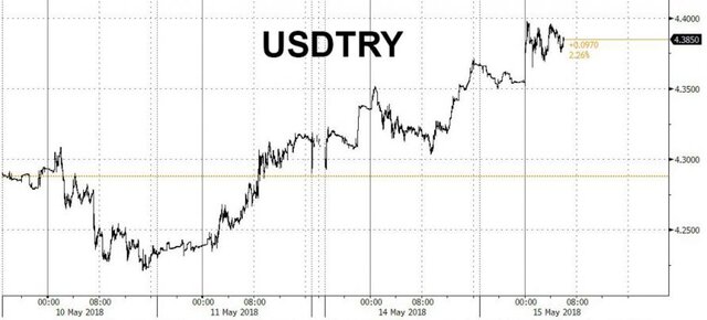 Учитывая, что турецкая лира находится на рекордно низком уровне против доллара и в этом году упала против 17 основных валют, отслеживаемых Bloomberg, Эрдоган заявил в Лондоне в понедельник, что после того как Турция превратится полностью в президентскую систему после голосования, он ожидает, что центробанк должен прислушаться к его призывам по снижению процентных ставок. Ключевая ставка центробанка сейчас составляет 13,5% по сравнению с инфляцией потребительских цен в 10,9%.