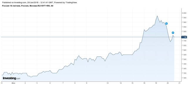 Напомним, в ходе недавних распродаж доходности по десятилетним ОФЗ достигли уровней лета прошлого года, вплотную приблизившись к отметке 8%.