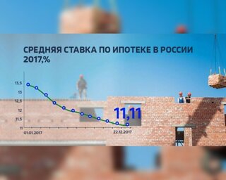 Средневзвешенная процентная ставка по рублевой ипотеке продолжала снижаться в течение года и достигла в декабре 2017 г. рекордно низкого значения в 9,79% (11,54% в декабре 2016 г.), а полная в банках - 11,1%.
