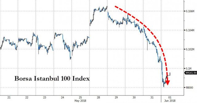Москва, 1 июня - "Вести.Экономика". Обвал турецкой лиры и турецких активов возобновился. Несмотря на усилия центрального банка, распродажи возобновились, и поводом снова стали заявления президента страны Реджепа Тайипа Эрдогана.