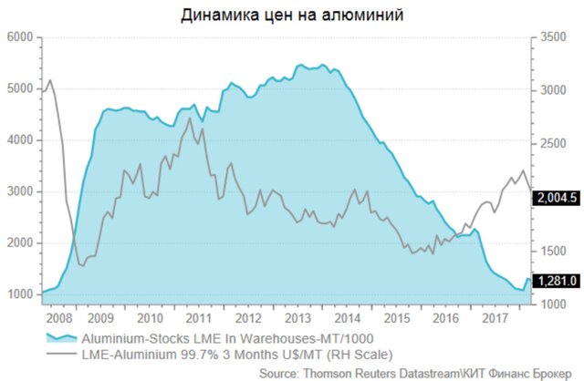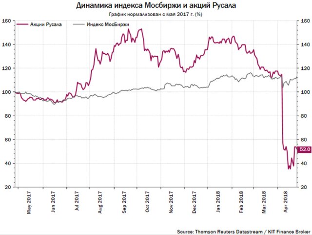 Акции Русала, второго в мире производителя алюминия, потеряли более 50% как на Московской бирже, так и на торгах в Гонконге. Мировые цены на алюминий, наоборот, с момента объявления санкций прибавили 24% и достигли 7-летних пиков на опасениях перебоев поставок металла на рынок.