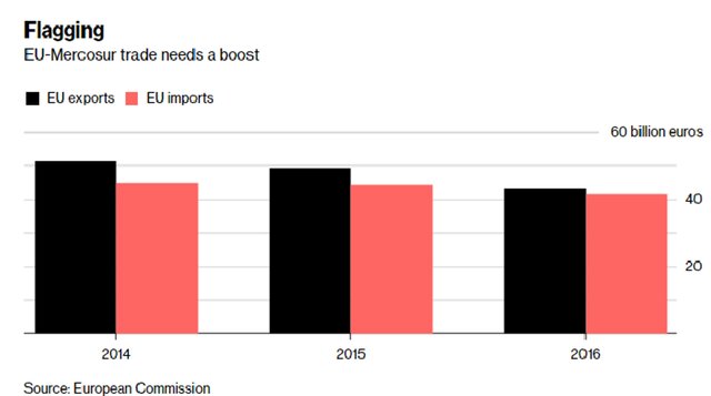 В 2016 г. объем торговли между Евросоюзом и Меркосур составил порядка 85 млрд евро, однако подписание соглашения может придать серьезный импульс для увеличения показателей.