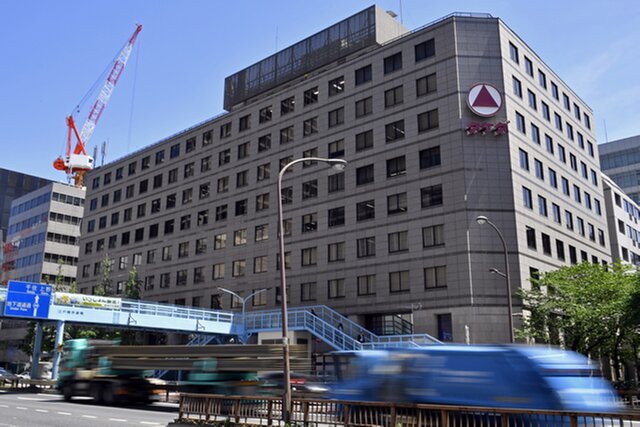 Логотип Takeda Pharmaceutical Co. на здании, где расположен офис компании в Токио. Фото: EPA-EFE/FRANCK ROBICHON