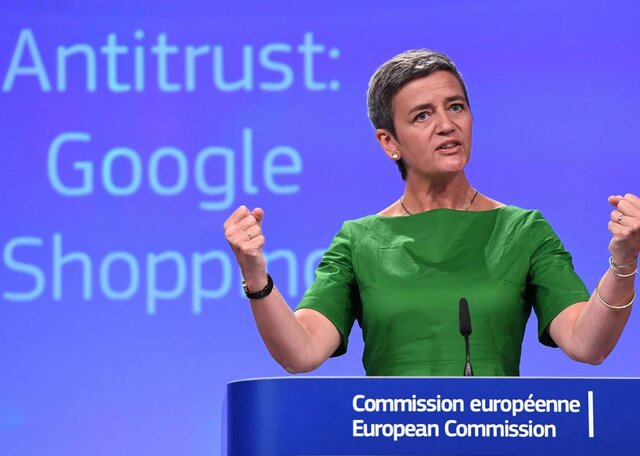 В конце июня 2017 года ЕК оштрафовала Google на 2,42 миллиарда евро за злоупотребление доминирующим положением на рынке поисковых систем, поисковик отдавал предпочтение собственному сервису Google Shopping при поиске товаров в интернете.