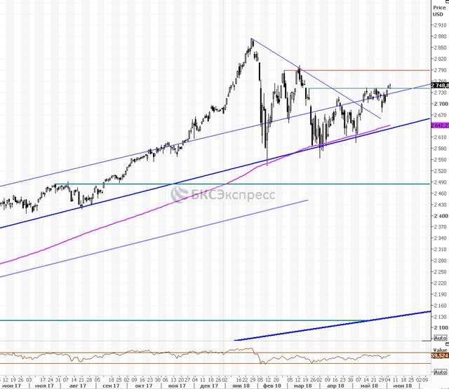 Американские фондовые фьючерсы консолидируются на премаркете. Во вторник ключевые индексы закрылись в разнонаправленном формате. Индекс Nasdaq Composite обновил рекордные уровни. С технической точки зрения, закрепление выше уровня 2730 пунктов открыло S&P 500 дорогу в район 2790-2800 пунктов. В случае ухода ниже 2730 ближайшей целью по индексу станет 2640 пунктов.