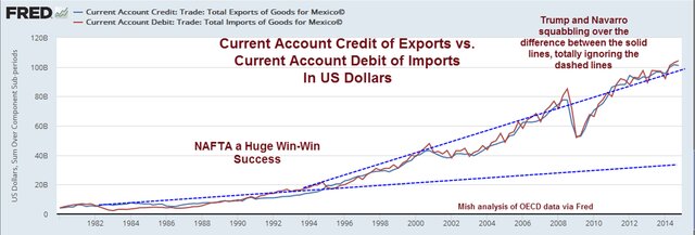 Трамп жалуется, что "США теряет состояние" на торговле с Мексикой. На вышеприведенном графике видно, что Трамп ошибается.