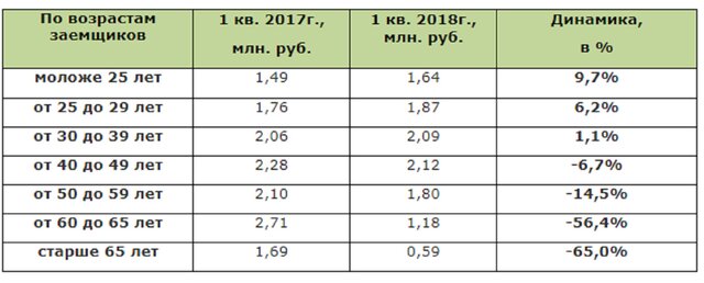 При этом в возрастных сегментах заемщиков динамика среднего размера ипотечного оказалась разнонаправленной. Так, самая высокая динамика его роста в I квартале 2018 г. была отмечена в возрастном сегменте заемщиков моложе 25 лет.