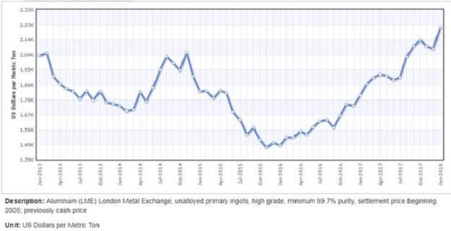 Финансовые результаты прошлого года можно оценить в целом как нейтральные для акций "Русала". Восстановление цен на алюминий – в прошлом году средняя цена на LME оказалась на 22,7% выше 2016 года – позволило компании, при стабильном объеме производства, нарастить выручку на 24,9% до 9 969 млн долларов США. При этом себестоимость производства алюминия выросла лишь на 13,1%.