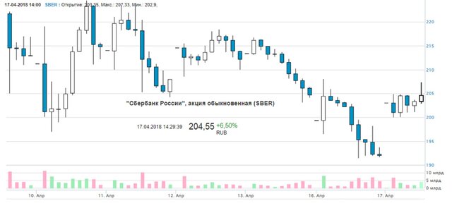 Акции Сбербанка росли на 5% в первые 10 минут после открытия торгов Мосбиржи, а к обеду ускорили рост до 7% и оказались в лидерах российского фондового рынка по темпам роста.