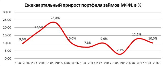 Основным фактором роста портфеля МФИ в 4 квартале 2017 г. стало увеличение на 12,2% (или на 9,5 млрд руб.) до 87,4 млрд руб. объемов действующих микрокредитов ("займов до зарплаты").