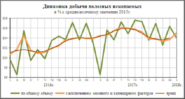 Но уже в 2017 году нефть стабилизировалась, в основном, выше 60 долл./барр., российская нефтедобыча в натуральном выражении достигла максимума в истории, и можно говорить, что прежняя структура экономики с очевидным лидерством добывающей промышленности вернулась.