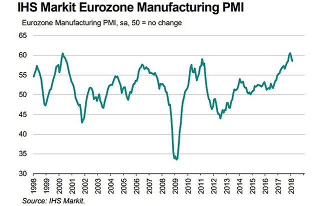 Индекс менеджеров закупок (Purchasing Managers Index, PMI) в производственном секторе 19 стран еврозоны опустился с январского уровня 59,6 до 58,6 пункта, оказавшись на минимуме за четыре месяца. Предварительная оценка составляла 58,5 пункта.