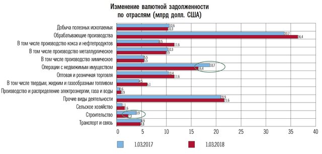 Для снижения уровня валютизации банковских активов весной 2016 г. Банк России ввел повышенные коэффициенты риска по валютным требованиям к заемщикам, не имеющим достаточного объема экспортной выручки для погашения долгов. Эта мера, а также то, что многие банки стали увеличивать долю рублевых кредитов заемщикам из неторгуемых секторов на фоне замедления инфляции и снижения рублевых процентных ставок, привели к сокращению валютной задолженности в основных проблемных отраслях. Однако с ноября 2017 г. темпы девалютизации кредитов существенно замедлились. Это было связано как с разовыми сделками по кредитованию компаний-нерезидентов в конце 2017 г., так и с общим замедлением процесса девалютизации по кредитам компаниям-резидентам. В результате к началу II квартала 2018 г. портфель составил почти 8,7 трлн руб. (151,5 млрд долл. США), увеличившись за год на 1,4%.