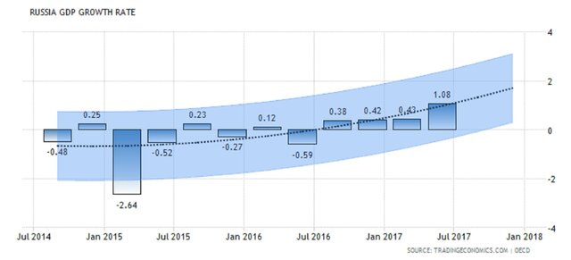 В январе 2018 г. Всемирный банк улучшил прогноз роста ВВП России в 2018 г. с 1,4% до 1,7%, что объясняется ростом цен на нефть во второй половине прошлого года.