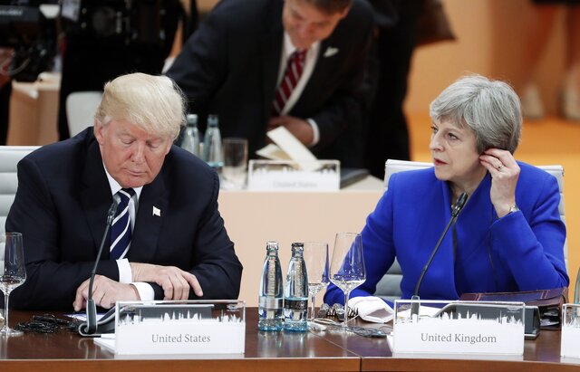 Президент США Дональд Трамп и премьер-министр Великобритании Тереза Мэй. Фото: EPA-EFE/FELIPE TRUEBA