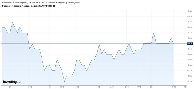 Гособлигации РФ сегодня преимущественно торгуются с понижением, рубль также находится под давлением и теряет к доллару в пределах 0,5%. Стоит, правда, отметить, что такая динамика скорее вызвана укреплением доллара на внешнем рынке. Иными словами, откровенных распродаж мы не видим, нет их в на долговом рынке, хотя многие инвестдома рекомендуют продавать российские бумаги.