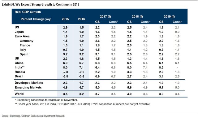 По прогнозам главного экономиста Goldman Sachs Яна Хациуса, рост ВВП России в 2018 г. составит 3,3%, в 2019 г. – 2,9%. В докладе Goldman Sachs также заявляется об ожиданиях экспертов дальнейшего снижения инфляции в экономике России и смягчения монетарной политики ЦБ РФ.