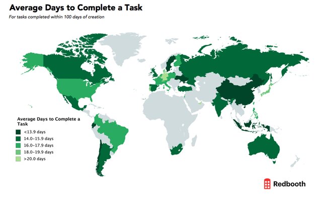 Компания Priceonomics проанализировала данные портала Redbooth, по результатам чего был составлен рейтинг самых продуктивных стран.