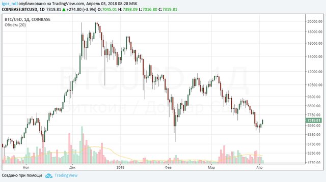 Капитализация основных криптовалют от максимумов опустилась уже примерно на 70%, что заставляет многих инвесторов подумать дважды, прежде чем принимать решение о вложениях. К слову, биткоин находится на минимуме с ноября, торгуясь около $7 тыс.
