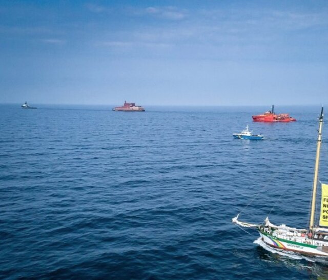Ряд фото с попыткой приближения "антиядерных активистов" к ''Академику Ломоносову' были опубликованы в соцсетях.