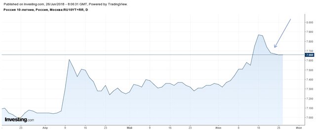 После достижения локальных максимумов, доходности по десятилетним облигациям федерального займа начали снижаться. И хотя о какой-то ажиотажном спросе речи не идет, судя по всему, наблюдается возобновление спроса на российские долговые бумаги.