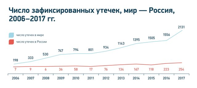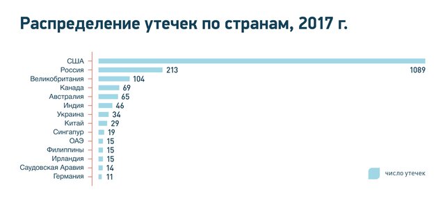 В 2017 году, в структуре скомпрометированной информации по-прежнему преобладают персональные данные о пользователях, однако их доля сократилась на 6 п.п. по сравнению с 2016 годом. Существенно выросла доля утечек платежной информации — с 3% в 2016 году до 13% в 2017 году. По мнению авторов исследования, такое увеличение связано со стремительным развитием в нашей стране дистанционных каналов осуществления финансовых операций и появлением новых форм платежей.