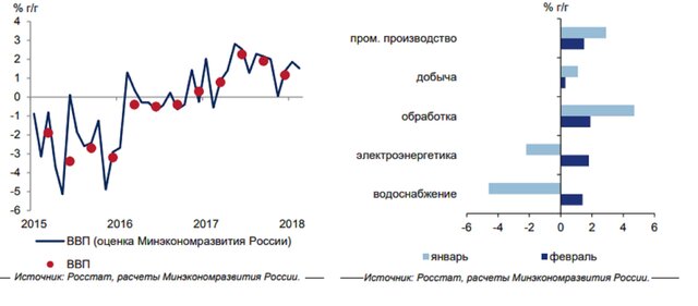 По оценке Минэкономразвития России, вклад промышленных видов деятельности в рост ВВП снизился до 0,4 п. п. в феврале с 0,6 п. п. в январе.