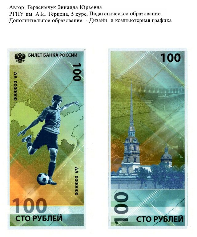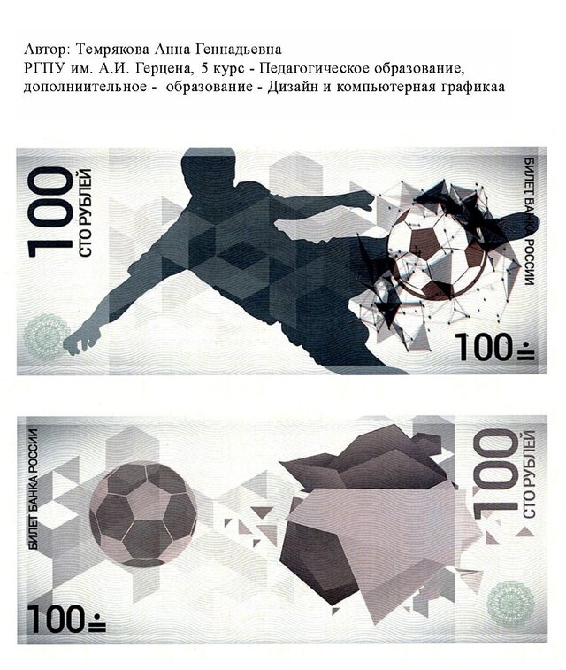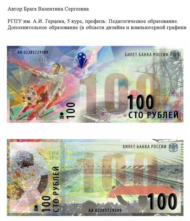 В 2016 г. Гознак опубликовал итоги конкурса на разработку идеи оформления лицевой и оборотной стороны памятной банкноты Банка России, посвященной Чемпионату мира по футболу FIFA 2018 года в России.