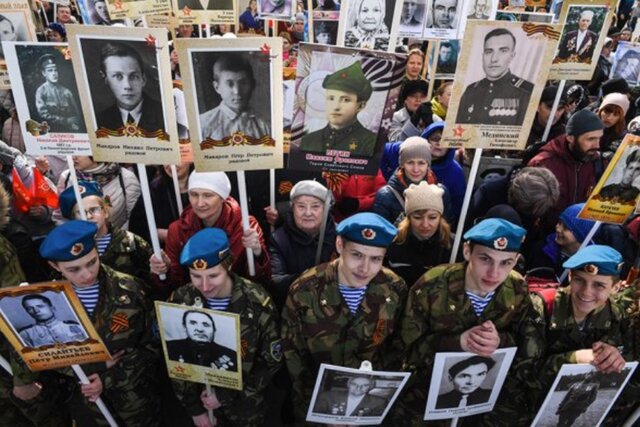 Поэтому в городах СССР, а впоследствии в России, и других бывших республиках, которые еще сохраняют историческую память, 9 мая проводятся парады победы. Именно поэтому люди, которым небезразличен тот вклад, который внесли их предки в победу, участвуют в акции "Бессмертный полк".