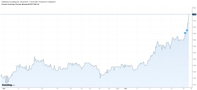Падение рубля происходит по целому ряду причин. Во-первых мы наблюдаем сильное падение цен на нефть, во вторых распродажи на развивающихся рынках. Кроме того, серьезные продажи наблюдаются на долговом рынке РФ. Доходности десятилетних ОФЗ взлетели до 7,75%. Отчасти этому способствовали заявления ЦБ, который по итогам очередного заседания намекнул, что снижения ставки до конца года ждать не стоит.