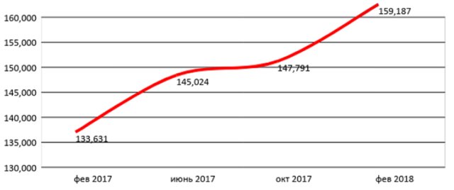 Таким образом, средний размер потребкредита вырос за год на 19,1% и в феврале 2018 г. составил 159,2 тыс. руб. (в феврале 2017 г. – 133,6 тыс. руб.).