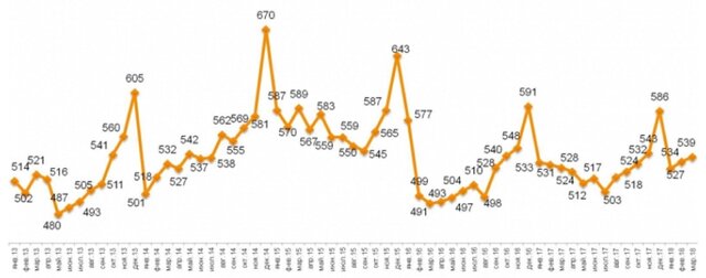 Москва, 12 апреля — "Вести.Экономика". В марте средний чек продолжил рост, начавшийся в январе. Величина чека по итогам марта оказалась на уровне 539 рублей, что на 5 рублей или 0,9% больше, чем месяцем ранее.