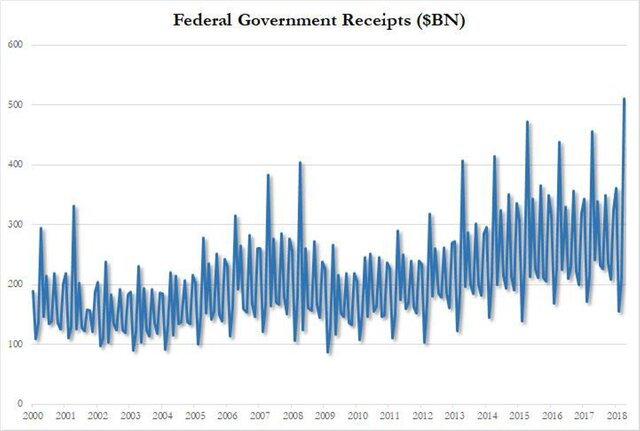 Корпоративные подоходные налоги в апреле составили $42,2 млрд и $120,8 млрд в течение 7 месяцев 2018. Это меньше, чем в прошлом году. В целом корпорации вообще становятся все менее важным источником государственного финансирования.