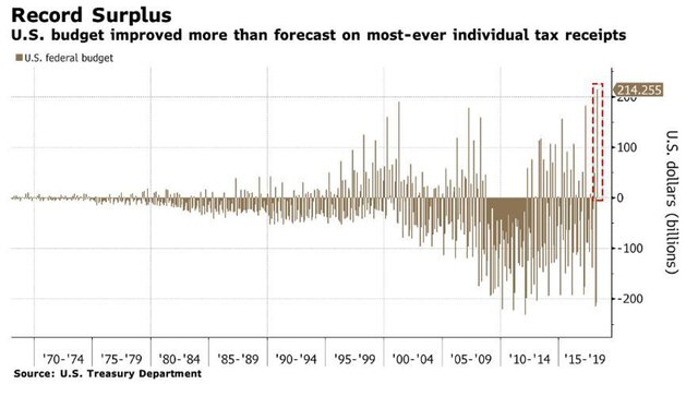 Стоит отметить, что для США апрель практически всегда является наиболее благоприятным месяцем с точки зрения наполнения бюджета. Именно в этот период налогоплательщики уплачивают основные взносы.