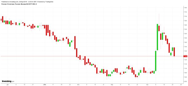 Добавим также, что большую часть потерь ОФЗ уже отыграли. Доходности десятилетних бумаг опустились до отметки 7,24%, хотя в моменте достигали 7,8%.