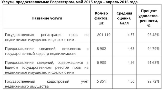 Из всех госуслуг, предоставляемых Росреестром, наибольшей популярностью у граждан в мае 2015 — апрель 2016 г. пользовалась услуга "Государственная регистрация прав на недвижимое имущество и сделок с ним". Получатели оценили ее более 800 тысяч раз.
