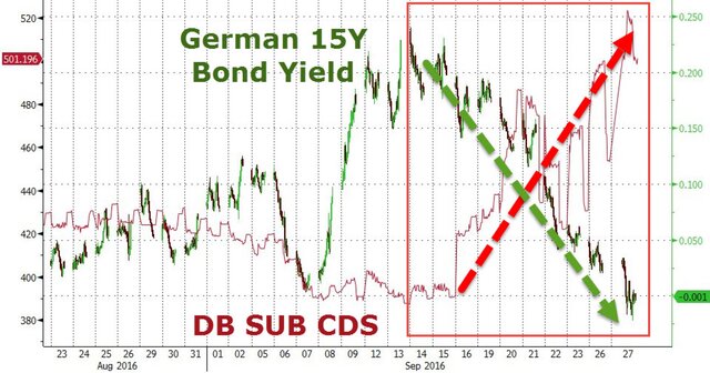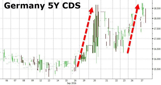 Страхи того, что крупнейший банк Германии не сможет расплатиться с Минюстом США нашли свое отражение в стоимости CDS для Германии.