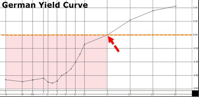 Как видно, сейчас положительную доходность для инвесторов в облигации Германии, могут обеспечить только бумаги со сроком погашения более 15 лет.