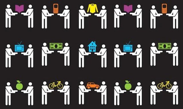 Sharing economy (экономика взаимопомощи, долевая экономика), т. е. когда люди через интернет сдают в аренду квартиры, автомобили, велосипеды и другие малоиспользуемые предметы.