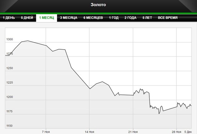 Цены взлетели до $1337,38, когда стало ясно, что Дональд Трамп побеждает на президентских выборах в США, однако затем перешли к снижению. На прошлой неделе стоимость золота опустилась до $1171,18 - минимума за девять месяцев - на ожиданиях, что Трамп увеличит госрасходы, чтобы стимулировать экономический рост, и процентные ставки будут повышены. На этом фоне вырос интерес инвесторов к акциям и облигациям.