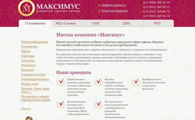 Медицинская страховая компания "Максимус" работает, в основном, в Ростовской области, занимается обязательным и добровольноым медицинским страхованием.