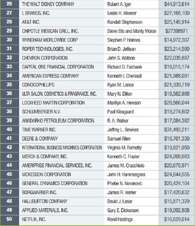 Анализ показал, что в 14 компаниях директора получали компенсацию на $20 млн больше, чем если бы они получали в соответствии с финансовыми показателями компании.