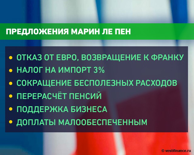 Раскрыв всю информацию о своих планах реденоминировать французскую валюту в случае победы на президентских выборах во Франции через два месяца, лидер "Национального фронта" Марин Ле Пен заявила, что намерена ввести новый франк, эквивалентный евро.Москва, 9 марта - "Вести.Экономика"