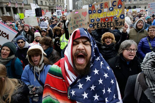 Протестующие против ужесточения миграционной политики США, Бостон, 29 января. Фото: Steven Senne / AP