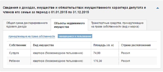 В декларации депутата Вороненкова за 2015 год у одного из его несовершеннолетних детей есть в собственности квартира такой же площади.