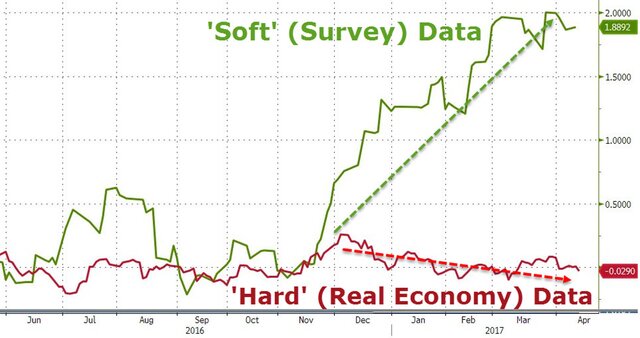 Экономические ожидания порождаются заявления властей. Взять того же Трампа, который обещал реформы, налоговые стимулы и т. д. Бизнес, видимо, поверил и отразил свой оптимизм в опросах, но на деле-то Трамп пошел по пути Обамы и сконцентрировался в поиске врагов и вмешательстве в дела других государств.