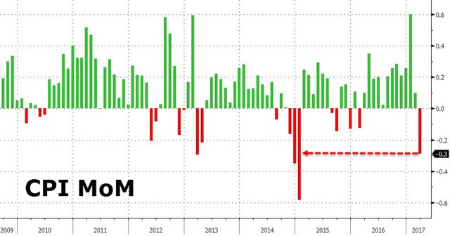 А теперь перейдем к так называемой реальной экономике, то есть цифрам, которые отражают реальное положение дел. Так, например, в конце прошлой недели вышли данные по инфляции. Изменение потребительских цен в месячном выражении показало худший результат за 7 лет.