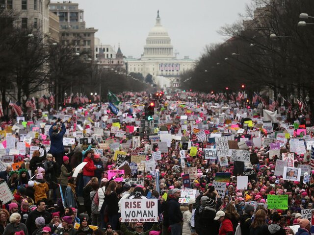 4 млн человек во всем мире, включая 500 000 человек в Вашингтоне, вышли на "Женский марш" против Дональда Трампа 21 января 2017 года.